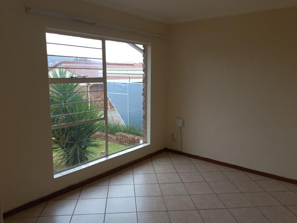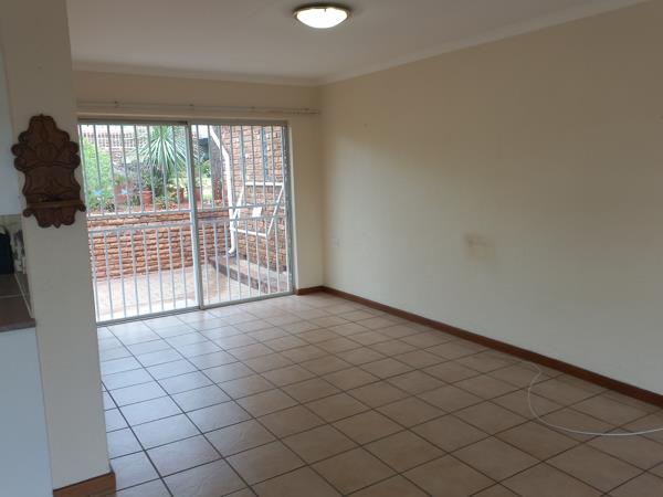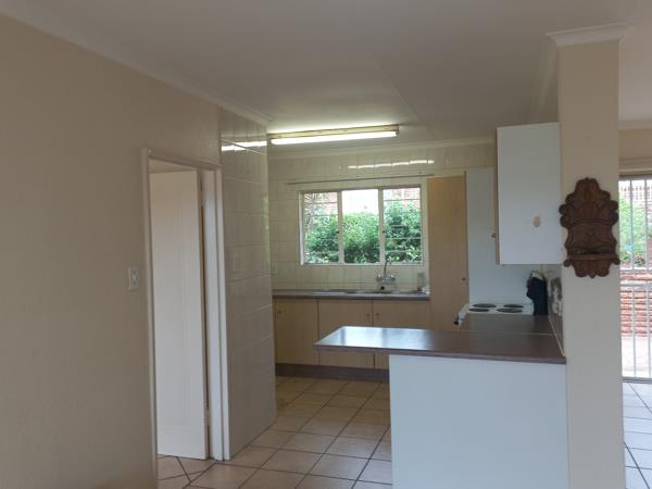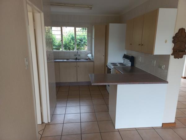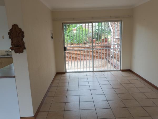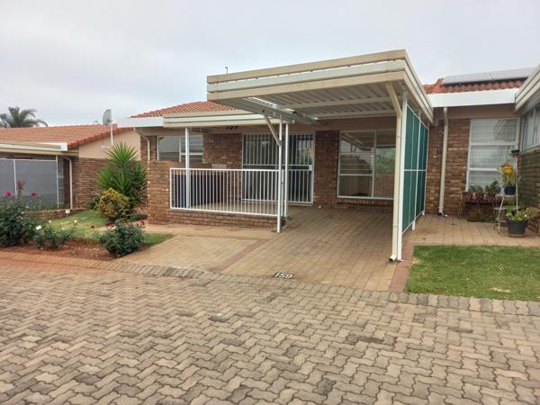Clean and neat townhouse with one bedroom in a Retirement Village for maximum of two independent, healthy persons over 50. Sunny verandah to sit and enjoy the view and safe parking in a single carport. Excellent security with access control, electric fencing and patrols by guards. Very safe to go for walks. Doctor available on premises once a week and Nurse available on call during office hours. 24 hour assistance available for any emergency. Other facilities include: Heated indoor swimming pool. Putt-putt course, library, gym, jukskei, tennis court, restaurant open for breakfast and lunch on weekdays and lunch on Sundays. Facilities for functions for small to large groups.