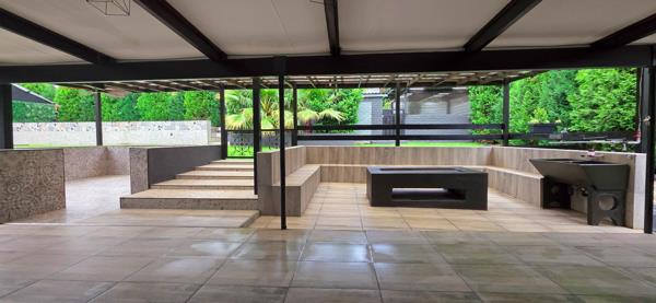 There is a large undercover patio with serving and preparation counters, water facilities, and ample room for hosting.