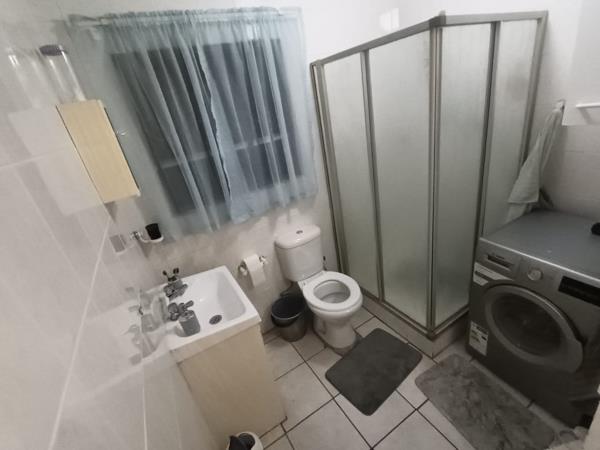 Spacious Main Bedroom: A true retreat featuring a walk-in closet with generous built-in cupboards BIC. The main bedroom boasts a private en-suite bathroom with a shower, basin, and toilet, and includes a convenient connection point for a washing machine.
