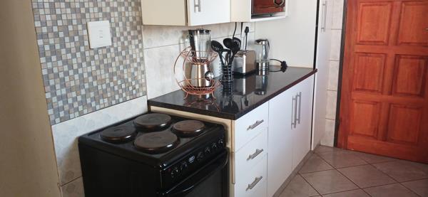 This lovely freestanding simplex offers comfortable and practical living in a well-maintained home. The property features a neat kitchen with ample space for your appliances, including a washing machine. It includes three fully tiled bedrooms, all fitted with built-in cupboards. The main bedroom offers an en-suite bathroom with a shower, bathtub, basin, and toilet, while a second full bathroom services the remaining bedrooms.