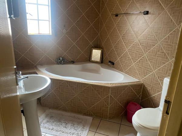 Security is a key feature of this Randfontein South rental. The property benefits from an automated sliding access gate, electric fencing, and wall spikes, ensuring peace of mind. Further enhancing safety, security bars are fitted on all visible windows and doors. This complex setting is pet-friendly, accommodating residents with furry companions.
