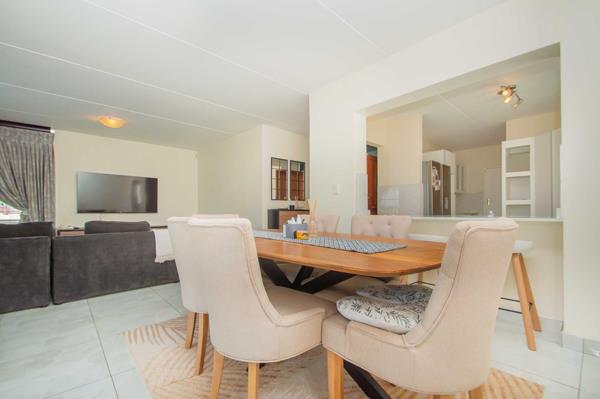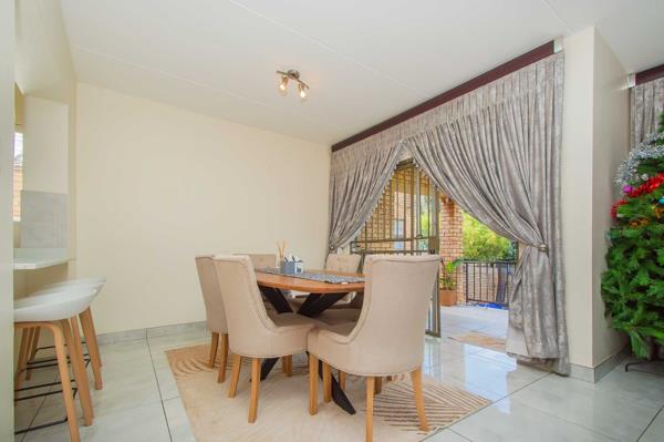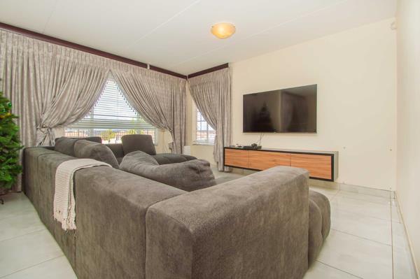 This inviting 3-bedroom, 2-bathroom townhouse, spanning a generous 177 square meters, offers comfortable living in the sought-after Amorosa area of Roodepoort. The interior boasts a contemporary open-plan design, seamlessly connecting the spacious lounge with the dining area and modern kitchen. The well-appointed kitchen is equipped with modern white cabinetry, light countertops, and a convenient scullery, ensuring both functionality and aesthetic appeal for daily living.