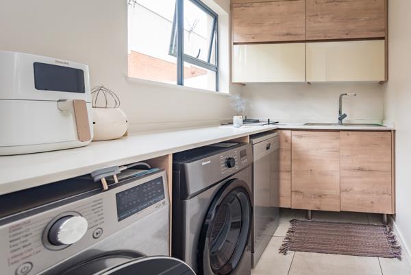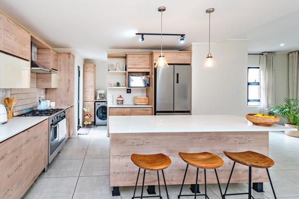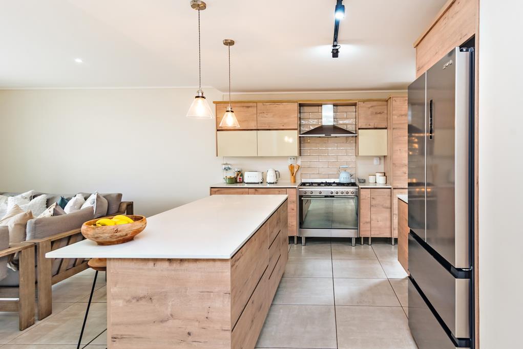 First Level: A stunning kitchen fitted with a gas stove and adjoining scullery. The open-plan living area flows seamlessly onto an enclosed patio with a built-in braai. Folding doors open out to a low-maintenance, pet-friendly garden perfect for entertaining.