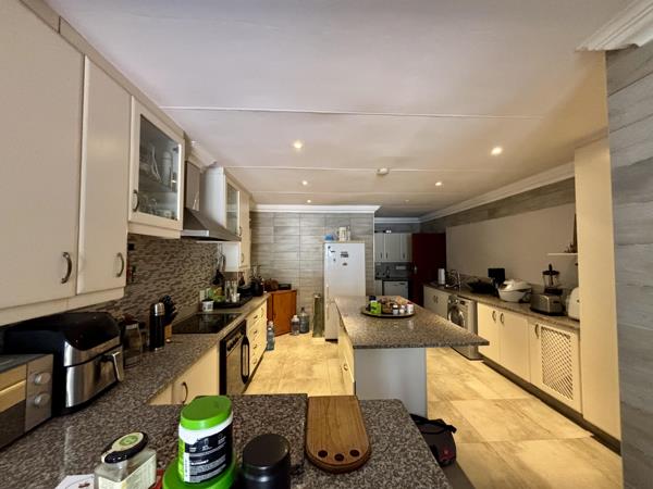 - Granite top modern open-plan kitchen and living area with oven + stove, plenty of cupboards, space for double-door fridge and 2 x appliances.