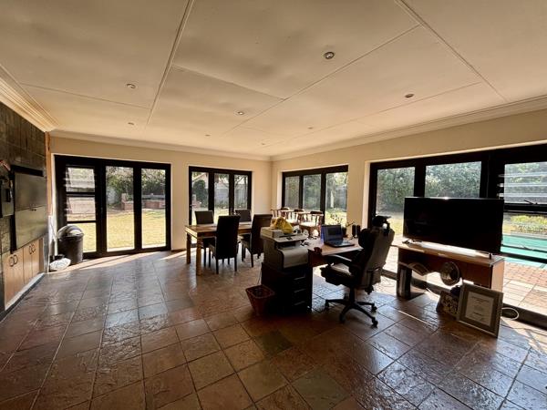 - Dining area entertainment area overlooking the pool.