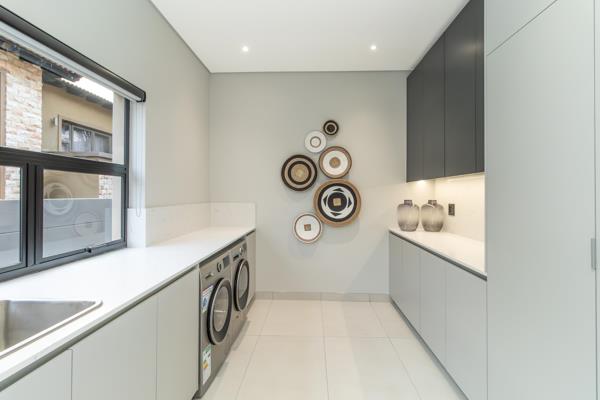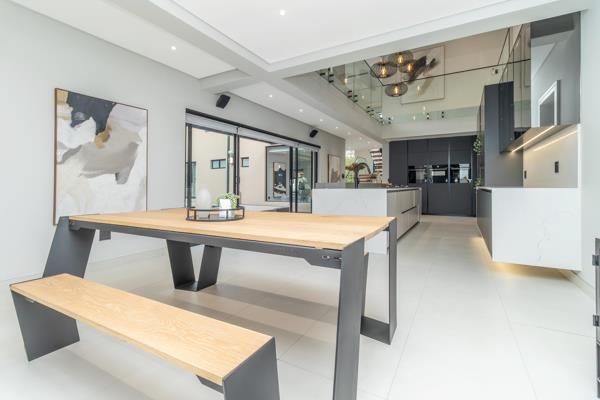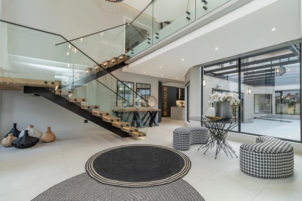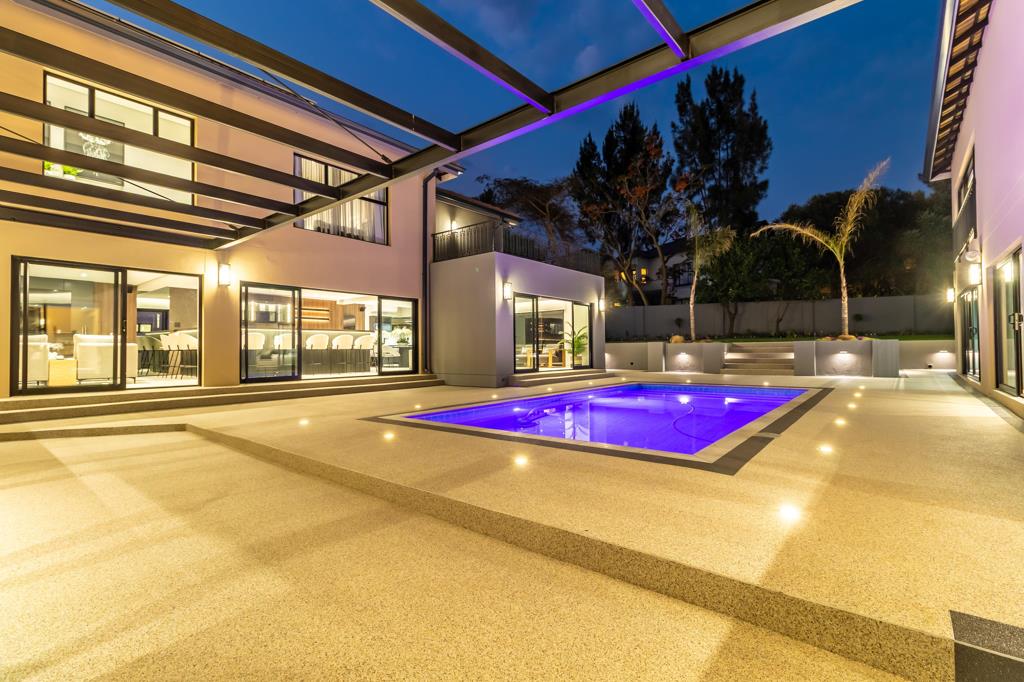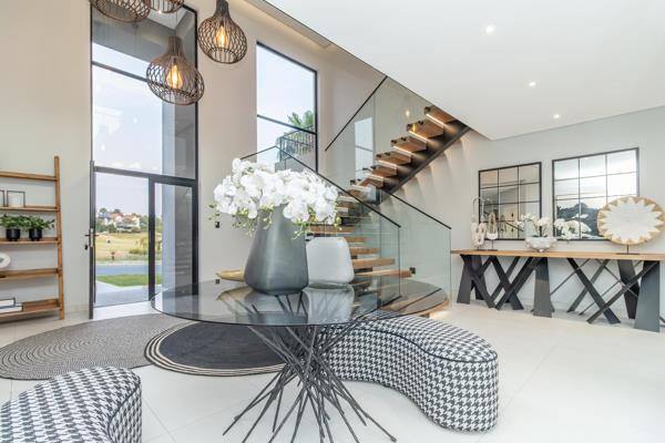 Spacious, sunlit open-plan living and entertainment areas, seamlessly connecting to outdoor terraces. Ultra modern , state of the art kitchen, and scullery, featuring sleek cabinetry, high-end appliances, and an additional prep area. Off the patio, there is a tiled swimming pool with a heat pump and manicured garden with golf course views perfect for leisure and hosting. The property is pet-friendly to accommodate the entire family.
