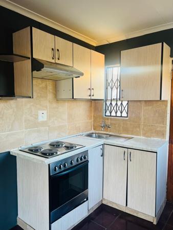 Cosy corner alone standing family home with lounge, fitted kitchen with stove, ALL bedrooms fitted with wardrobes, separate bathroom and toilet (to accomodate your guests) fully tiled, burglar bars all doors and windows, big yard to park trucks and cars , double carpot to park 2 cars close to primary school (walking distance) close to main road in Fleurhof ext 2 for just R8500 depsoit and R8500 rent