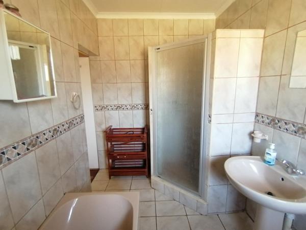 The walk-in wardrobe main ensuite bathroom has a bath, shower, toilet and basin.