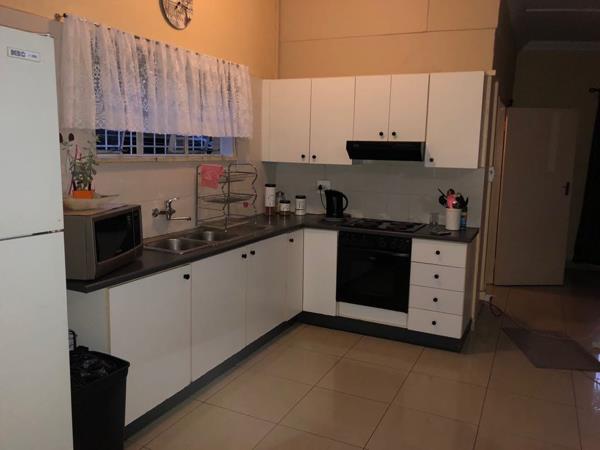The kitchen comes equipped with built in cupboards, a stove with oven and hob, a washing machine connection and blinds for privacy, making daily tasks simple and efficient.