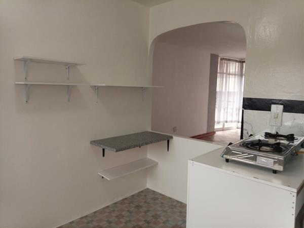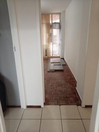 The unit features a welcoming lounge that opens onto a small balcony, perfect for some fresh air and relaxation. There are two bedrooms, with the main bedroom offering built-in cupboards and and adjoining door leading to the second bedroom.The second bedroom is fitted with a free standing wardrobe.