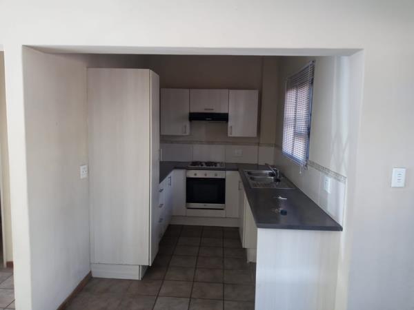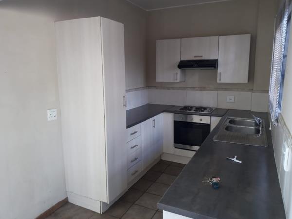The open-plan, tiled lounge flows effortlessly onto a private patio, creating an inviting space for relaxed indoor-outdoor living. The practical kitchen is tiled and equipped with an under-counter oven and hob, with space for one appliance and a fridge. A single carport is allocated, with ample visitors parking available. The complex boasts 24-hour security for peace of mind. Please note: no pets allowed, and water and electricity are excluded from the rental.
