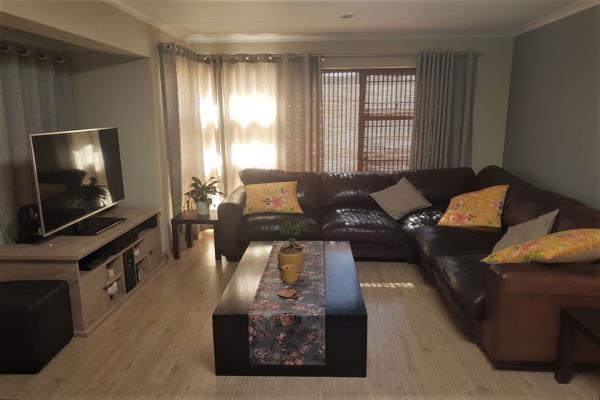 Spacious cluster in well-kept complex. This beautiful home offers you privacy in a friendly and welcoming estate. The freestanding property has 2 bedrooms, complimented by 2 full bathrooms. An open plan kitchen/living room area allows for company whilst preparing supper. Cupboards galore in the large kitchen, featuring a convenient pantry cupboard, breakfast bar and scullery. Plenty of space for a fridge plus 3 more appliances. Can accommodate a top-loader washing machine. A breeze to maintain with tiles and laminated floors throughout. The living room flows into a huge dining room which leads out onto the patio with built in braai. Two small, well-behaved dogs permitted to enjoy the enclosed wrap around garden, pending pre-approval by the Body Corporate. No cats allowed. A double automated garage and fibre connection point is available.