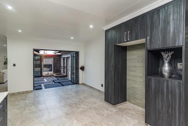 Large stacker doors extend the living space outdoors to a stylish entertainment haven, complete with a built-in braai the perfect setting for relaxed family evenings or vibrant weekend celebrations. This seamless indooroutdoor connection embodies the essence of South African living at its finest. There is also a 2 500lt municipal back-up water.