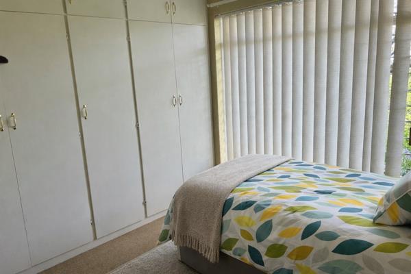 You enter through a security gate and can park right at your door. The patio welcomes you into a spacious lounge area, and there is a desk in the lounge which makes it easy to work from home. The kitchen is well-equipped with space for a dishwasher and comes with a fridge for added convenience. The bedroom has space for a single bed and includes built-in cupboards for storage. The bathroom offers a bath, basin and toilet, with a shower head fitted over the bath for easy showering, and there is also space for a washing machine. Security is excellent, with beams in the garden for peace of mind. Enjoy the lovely view from the patio and the convenience of being close to all amenities, shopping centres and the Botanical Gardens. Water is included in the rental and the unit has pre-paid electricity. The deposit is R6,000.