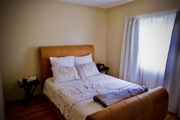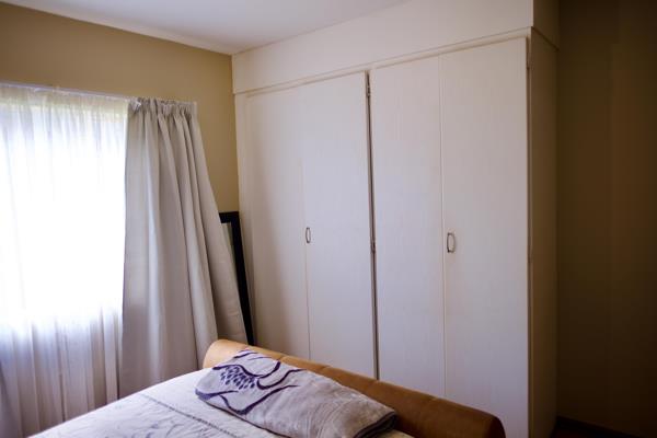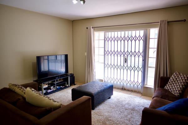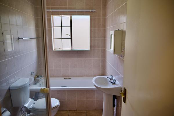 The unit consists of an open plan kitchen and lounge with a door leading to the patio. 2 bedrooms with built-in cupboards, 2 bathrooms 1 main en suite with a shower and the other a full bathroom with a bath and shower. A single lock-up garage and visitors'' parking for your convenience.