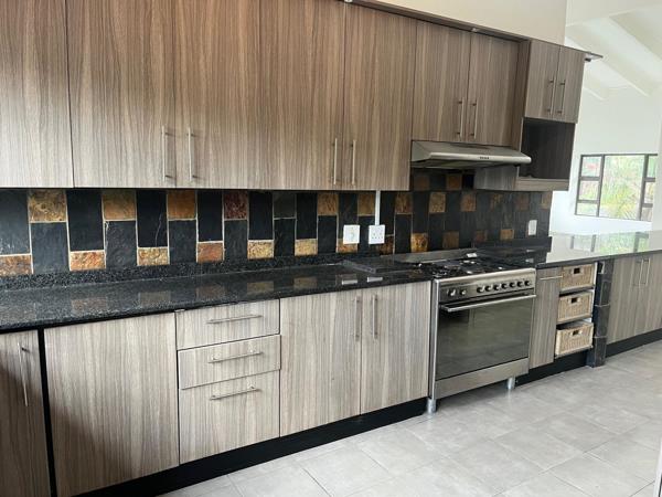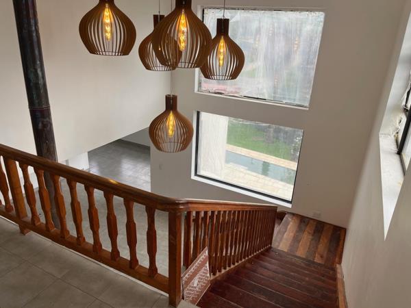 Modern freestanding house in Roodekrans, consisting of 3 large bedrooms, a study that can be used as a 4th bedroom, 3 bathrooms plus guest bathroom, large living areas, a state-of-the-art kitchen, a flat with a loft bedroom, kitchenette and living area and bathroom with a toilet, shower and basin, a pool with a covered lapa, double garage and ample parking space.