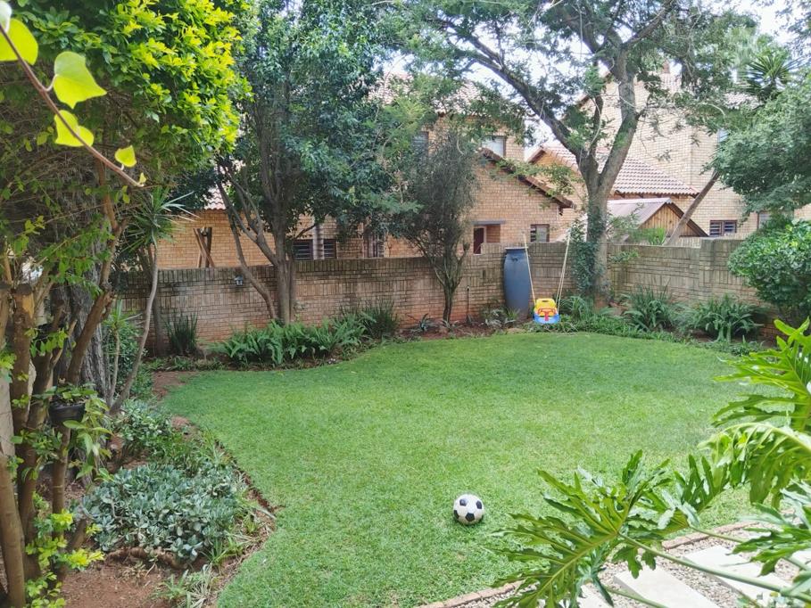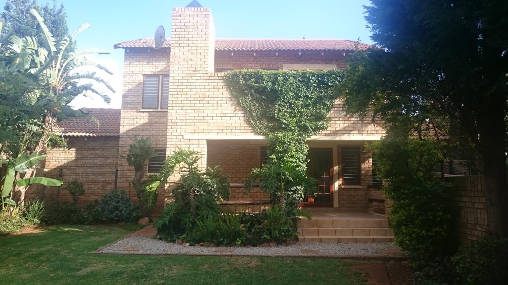 Lovely private free standing double story unit 190 sqm in a secure small complex 16 houses: 3 bedrooms all upstairs with security gate on the landing , 2 full bathrooms bath and shower, main with oval bath, main bedroom opens onto a large patio. Granite kitchen newly refurbed with space for all appliances, guest loo downstairs. Lounge opens onto a large covered patio with built in braai, unit has a separate dining room and large double automated garages. Beautiful Large garden front and back, pet friendly, max 2 small dogs allowed no cats ,subject to trustees approval. Amenities: 5 minutes from, Krugesrdorp high way, Cradlestone mall, Ruimsig shopping center, Vet, Ruimsig golf coarse, Silverstar casino, private schools, Pinehaven hospital, botanical gardens etc