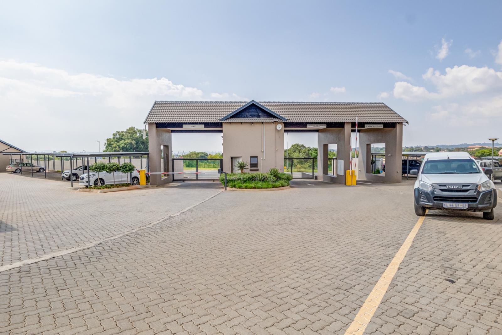 Ruimsig, a desirable Roodepoort area, offers suburban tranquility and convenient access to amenities. The complex features modern exterior designs, well-maintained green lawns, and mature trees, enhancing the living environment.