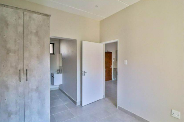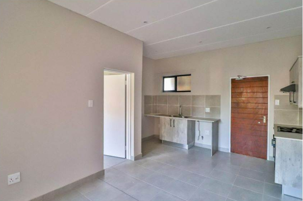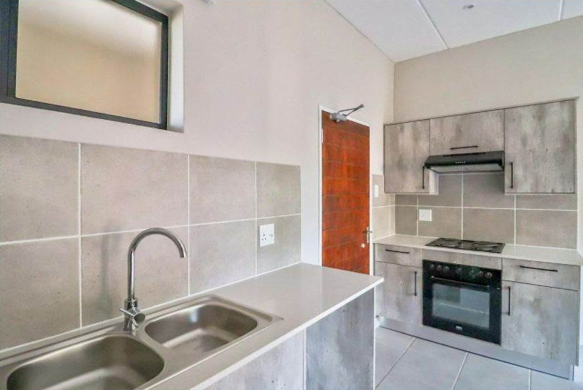 Discover modern and convenient living in this well-appointed one-bedroom apartment available for rent in Whiteridge, Roodepoort. This contemporary unit offers a seamless open-plan layout that connects the lounge and dining area, creating a comfortable and practical space for everyday living. The stylish kitchen stands out with sleek grey cabinetry, white countertops, a double stainless steel sink, and an integrated oven, hob, and extractor fan. Tiled flooring, neutral walls, recessed ceiling lights, and good natural light contribute to a fresh and inviting atmosphere throughout the living areas.