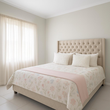 This three-bedroom unit is ideal for a young couple or a small family. It features a well-designed kitchen that flows seamlessly into the open-plan living area, creating a welcoming space for everyday living.