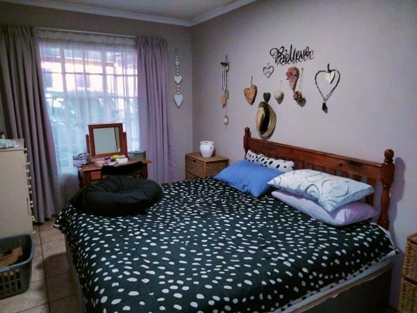Garden flatlet with fully tiled floors, built in cupboards, built in under counter oven and gas hob. Both front and back door have security gates and windows have burglar bars. Property has a motorized gate. And the Flat will have a panic button linked to EC. We are looking for someone that will look after our little place like their own. Price includes water and electricity based on amount previous tenants usage but Gas for Geyser and stove hob is for Tenants expense. Small dog allowed. We have solar so load shedding doesn't really affect us. Available immediately. Please watsapp me if you are interested.