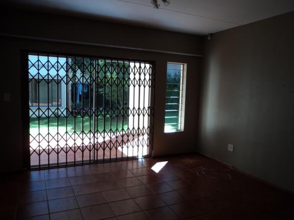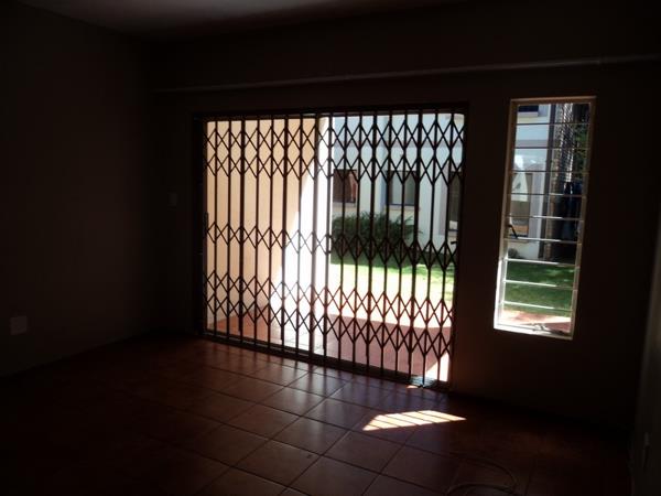 Comfortable ground floor apartment for rent comprising 2 bedrooms, 1 bathroom with walk in shower, bath toilet, hand basin, open plan loungekitchen, door leading into the kitchen, door leading from the lounge to an covered patio area with common garden, 1 covered parking. NO PETS ALLOWED. Tenant will be responsible for rent, electricity and water. Occupation 1st January 2026.