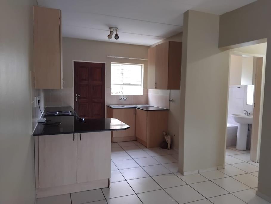 This inviting 2-bedroom, 2-bathroom rental property offers comfortable living within a well-maintained complex in Wilgeheuwel, Roodepoort. The interior boasts an open-plan layout, seamlessly connecting the lounge area with a modern kitchen. The kitchen features contemporary light wood cabinetry, sleek dark countertops, and tiled flooring, complemented by an integrated hob and oven, providing a functional space for daily meal preparation. Neutral-toned walls and durable tiled flooring extend throughout the main living areas, creating a versatile and easy-to-maintain environment.