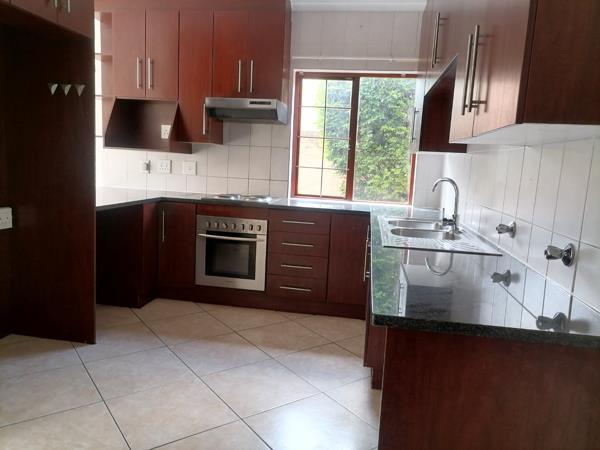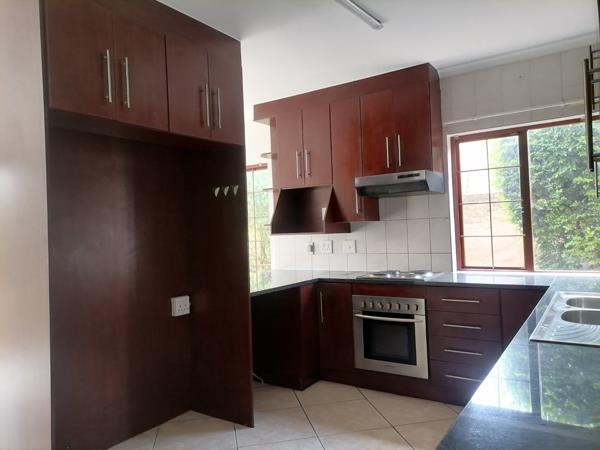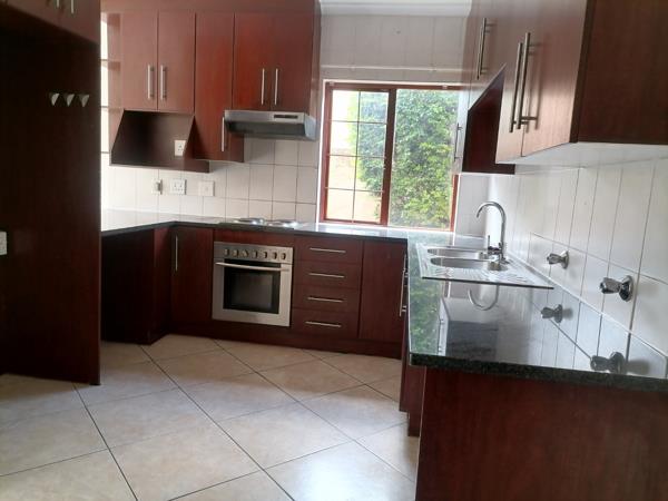 - lounge and dining room with sliding doors leading onto a private pet-friendly garden, Lovely kitchen with granite countertops, built-in cupboards, space for a double-door fridge and 1 wet appliance, -2 good-sized bedrooms upstairs with built-in cupboards, one ensuite and second bathroom, both bedrooms have small balcony for privacy,theres also half bathroom downstairs catered for visitors, -Double automated garage with direct access into the unit, -Pet-friendly for 2 small pets subject to body corporate approval. Dogs not higher than 40cm will be allowed, -Fibre ready, Elyon is a secure complex with excellent 24-hour manned security