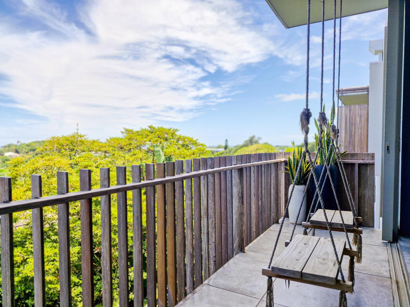The open concept kitchen and living area flows effortlessly onto a private balcony, where residents can enjoy tranquil forest views complemented by a distant sea view. The space is ideal for relaxed living and entertaining, with large windows allowing for plenty of natural light.