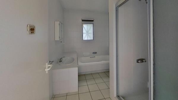 3 bedrooms with built-in cupboards, ceiling fans and 2 full bathrooms of which one is an en-suite to the main bedroom. Main bedroom has a wall fitted TV stand. Main bedroom has a large sliding door opening onto the patio. Block-out blinds at the main bathroom and two of the main bedroom windows with ceiling fans in each room.