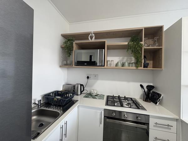 This fully furnished apartment has a lovely open plan living space with modern kitchen finishes.