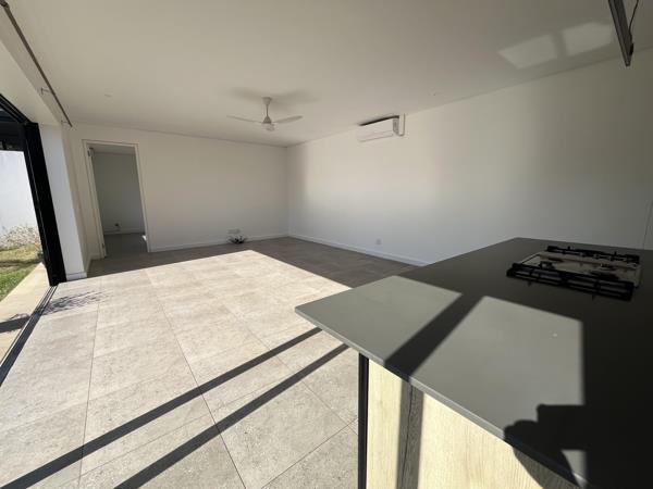 Open plan kitchen overlooks lounge and dining room and verandah - garden unit.