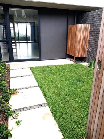 The kitchen leads from a private grassed yard that is pet friendly and has a manageable sized garden.