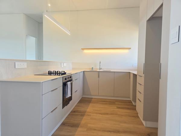 The heart of the home is the expansive open-plan living, dining, and kitchen area, thoughtfully designed to maximise both flow and the spectacular 180-degree sea views. The modern kitchen boasts a gas-and-electric combination stovetop, premium cabinetry, and a layout that encourages effortless entertaining. Large glass doors open onto a spacious patio with a built-in braai, allowing for relaxed indoor-outdoor living and uninterrupted ocean breezesall framed by the elevated vantage point unique to penthouse living.