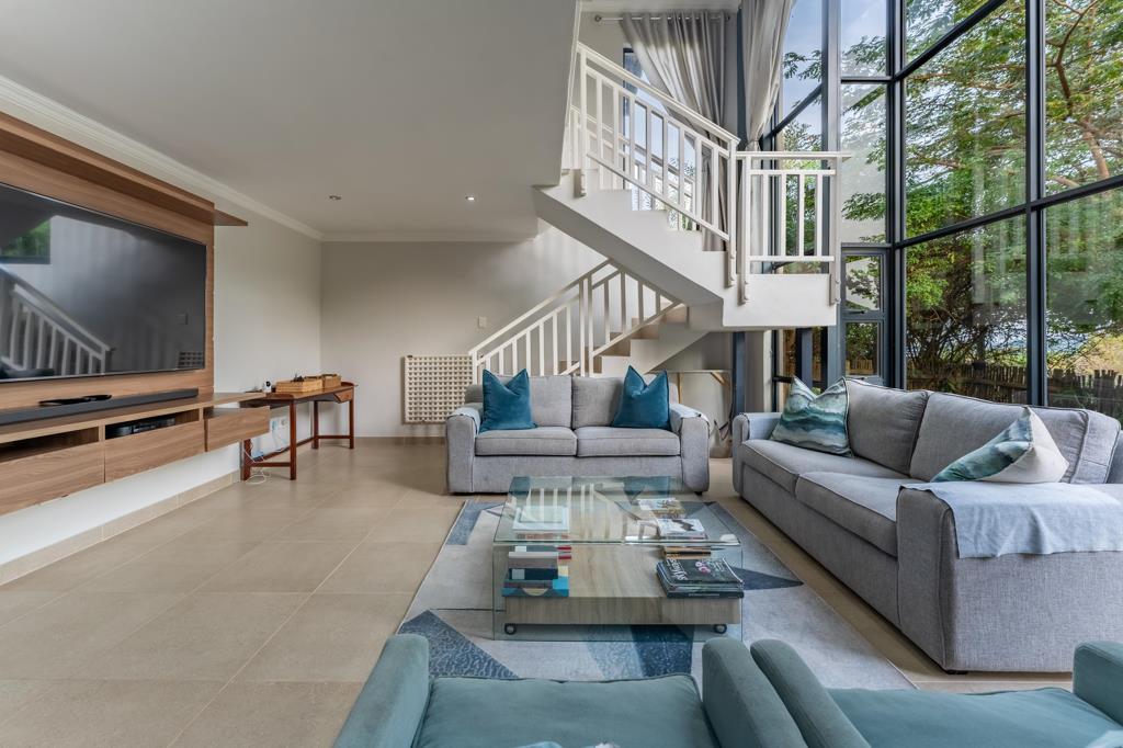 Newly renovated townhouse in Simbithi Eco Estate. Located in Emoyeni, this double-storey townhouse offers contemporary finishes and seamless indoor-outdoor living. The upper level features four bedrooms, including two en-suite, while the other two share a full bathroom. A versatile study or TV lounge provides additional living space. Two of the bedrooms open onto a private balcony, while another opens to a private courtyard.