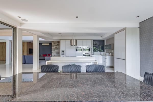 Privately positioned, luxury home situated in Simbithi Eco Estate. This tastefully decorated home comprises five en-suite bedrooms on the upper entrance level, and expansive living and entertainment spaces on the lower level. Stacking doors throughout allow for easy indoor-outdoor living. The decked pool area sits beneath a pergola, with private coastal forest views. On this level is a cinema room, bar, TV and formal lounge, gourmet kitchen and scullery.
