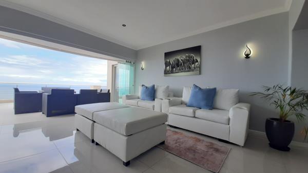 Designed for effortless entertaining, the apartment offers two lounges, a built-in bar, braai area, dining space and a balcony with panoramic ocean views and a Jacuzzi.