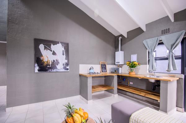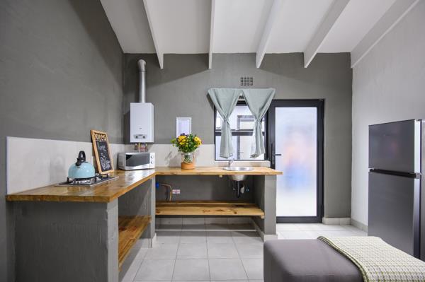 Kitchenette with gas cooker and gas geyser cost-effective and unaffected by load-shedding