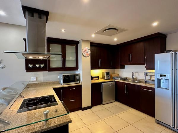 The apartment features three well-appointed bedrooms, each offering the comfort and privacy of its own ensuite bathroom. Stylish dark brown cupboards and elegant wooden flooring add warmth and sophistication to every room.