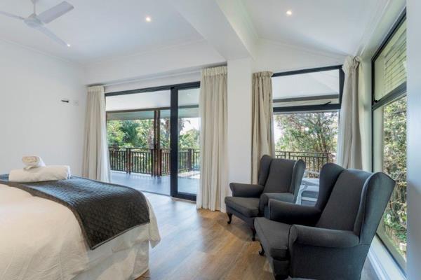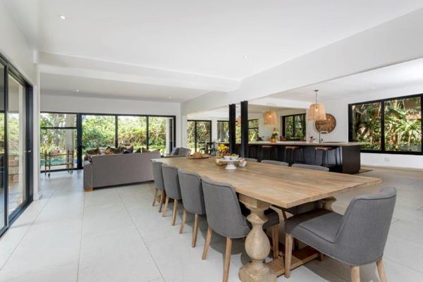 This spacious, luxury, Zimbali home exudes character throughout the open plan living area which includes a modern kitchen, dining room, formal lounge with stack doors onto the exquisite outdoor entertainment area and private pool (with net).