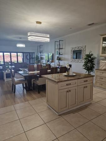 The open-plan kitchen, lounge and dining area leads out onto the entertainment deck with outdoor seating and a built-in gas braai.