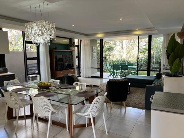 Discover the perfect balance of elegance and nature in this beautifully designed 3-bedroom, 2-bathroom townhouse, set within the prestigious Zimbali Estate.