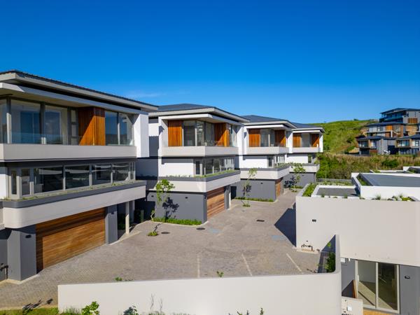 Enjoy stylish, contemporary living in Aurum at Zimbali Lakes Estate, a secure and beautifully designed home that blends modern architecture with eco-friendly living. This newly built, three-level home offers a perfect balance of luxury, comfort, and practicality in a peaceful estate setting. The ground floor features a spacious open-plan design where the kitchen, dining, and living areas connect seamlessly, creating an ideal space for everyday living and entertaining. Large glass doors and windows flood the home with natural light and open onto a private garden and swimming pool, allowing you to enjoy an easy indooroutdoor lifestyle.