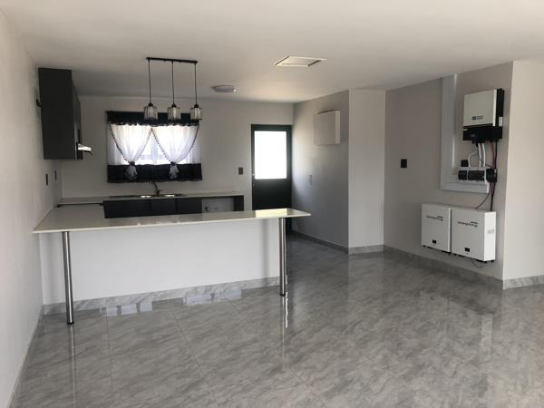 Featuring an open plan lounge, dining room and kitchen (with gas stove), and plumbing for a washing machine or dishwasher. There are 2 bathrooms with showers. Tiled throughout with back up electricity and water. Plenty of cupboard space in the bedrooms and passage. Includes all curtaining and clothes drying facilities.