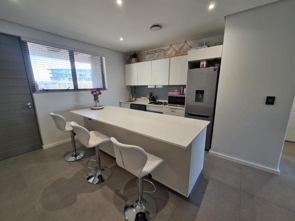 The contemporary kitchen is a standout feature, with a sleek center island, premium finishes, and ample storage ideal for both entertaining and everyday living. The open-plan layout flows seamlessly to a generous private patio that overlooks the lush central park area, creating an inviting indoor-outdoor lifestyle.