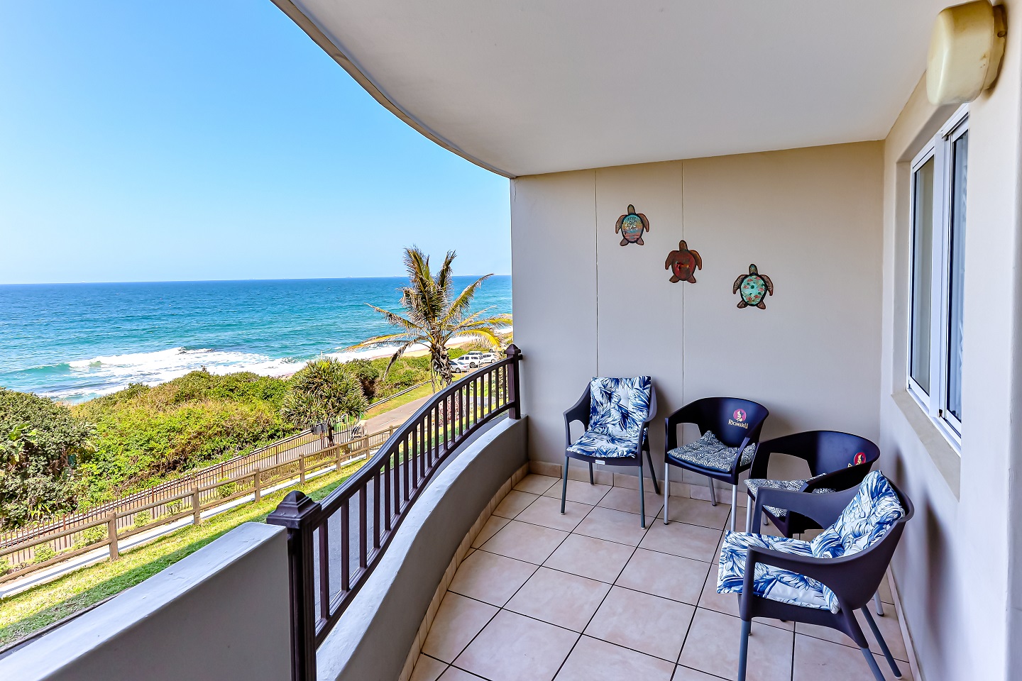One bedroom flat with sleeper couch in Westbrook. Just across the road from the beach and 10km south of Ballito. This lovely flat has aircon in lounge, queen bed and sleeper couch for 2 children (Under 5). WiFi available with Netflix. Air-fryer , washing machine and safe available. Work desk in lounge. Guests can bring their own gas braai to use on the patio. Standing fan in main bedroom