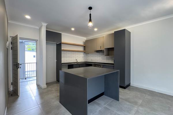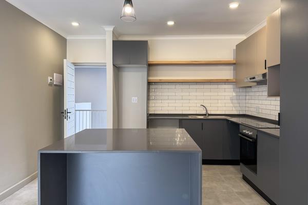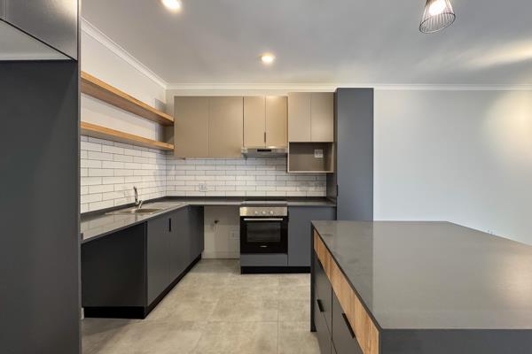 This modern one-bedroom apartment offers quality finishes and a practical layout. Located within the new Westbrook development, it provides strong value in an ideal setting with secure boundary electric fencing and remote gate access. On entry, the unit features a well-designed kitchen with ample cupboard space, flowing into an open-plan dining and living area.