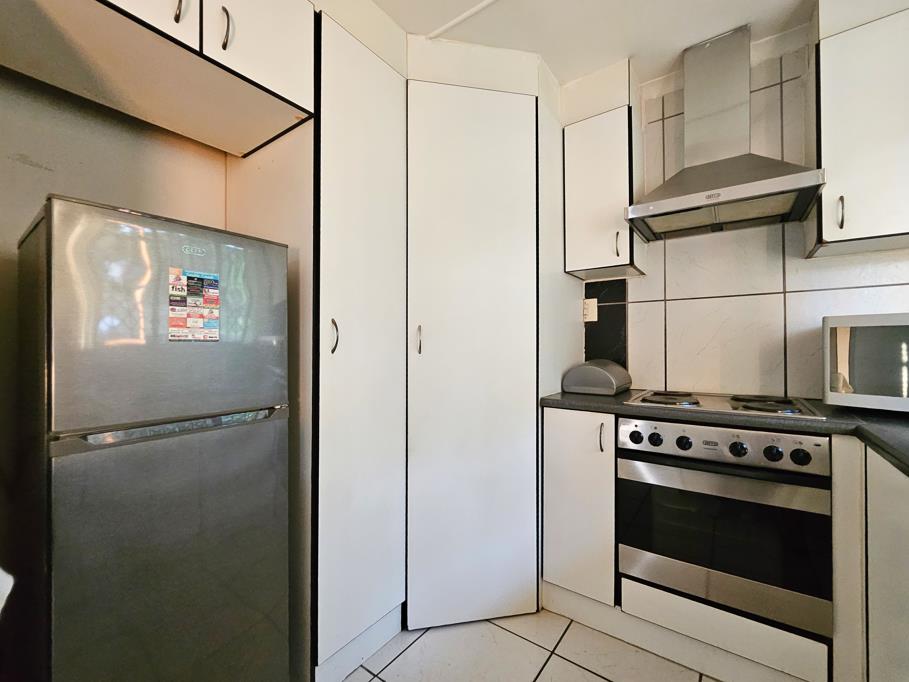 This charming residence boasts two bedrooms adorned with built-in cupboards, ensuring ample storage space. The generously sized bathroom features both a shower and a corner bath, catering to convenience and comfort. Practical amenities include a pre-paid electricity meter, ensuring ease of control over utility usage.