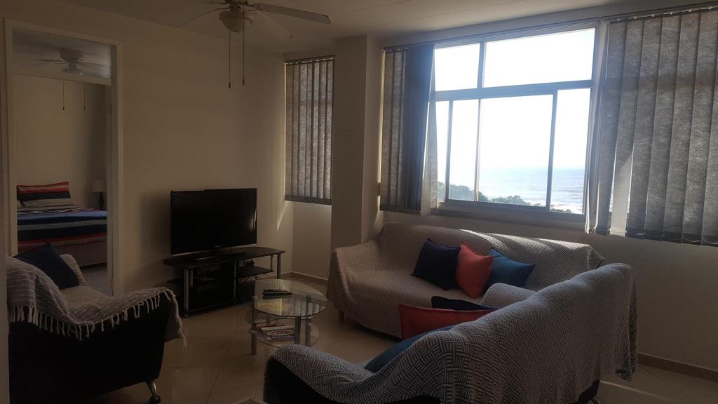 Soak up the sun & relax in your apartment located on the Doonside beach front, with immaculate sea views and beach access. This spacious self-catering apartment caters for family type holiday accommodation. This apartment which overlooks the swimming pool & ocean provides stunning views from an enclosed balcony. This is a secure facility with remote control access and undercover parking. This complex also has an outside braai area and kids play area along with large communal swimming Pool. It is also approximately 4 km from the popular Galleria Shopping Mall, which is the largest shopping mall in the South Coast, boasting a variety of chain & retail stores and restaurants, as well as cinemas, ice rink and a whole lot of other entertainment.