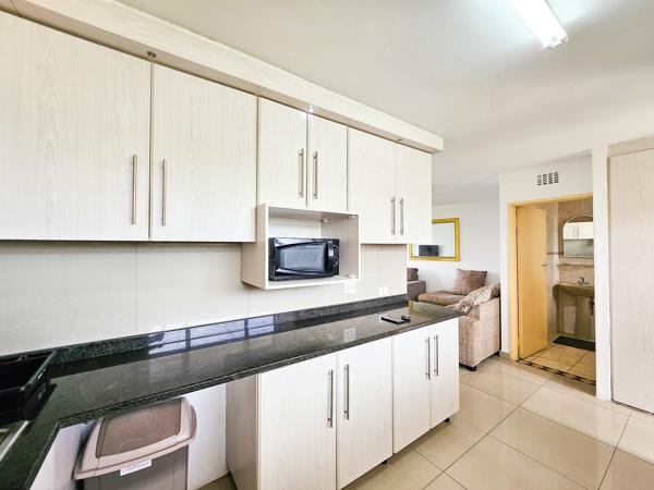 Start your day with the refreshing scent of the ocean in this spacious one-bedroom, one-bathroom apartment. The kitchen is fully equipped to meet all your culinary needs, while the cosy bar area in the lounge is perfect for unwinding with a sundowner after a busy day.